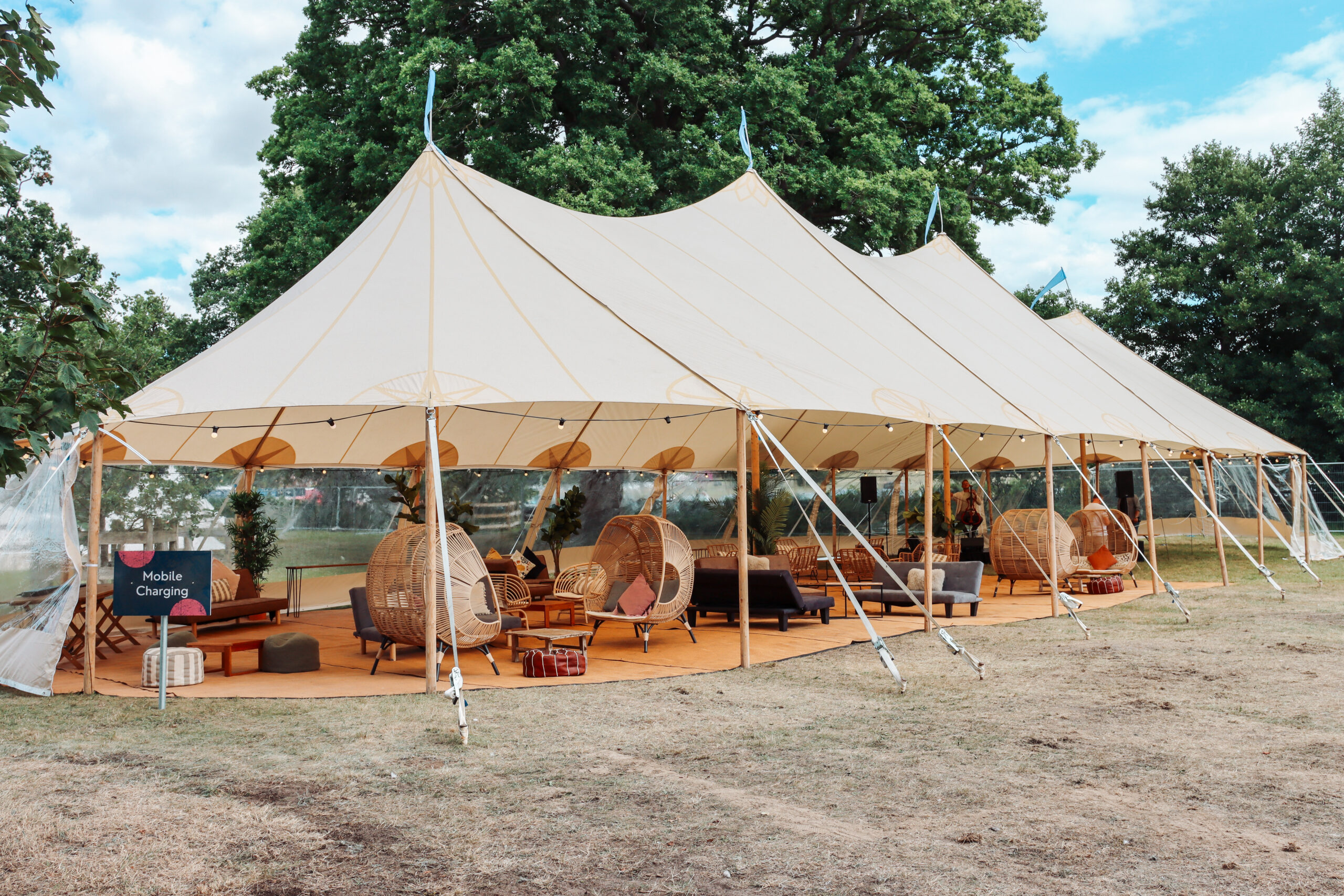 Alongside the accommodation, we delivered a premium guest experience with a lounge space beneath our Sailcloth Marquee, an on-site bakery and smoothie bar, food vendor and bar, generous seating areas, toilets, showers, and a pamper parlour – combining comfort, style, and convenience in a historic setting.